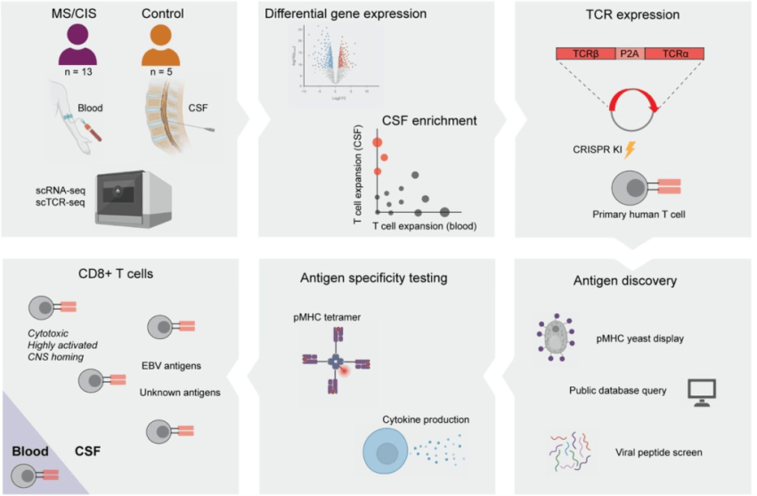 Hayashi F, Mittl K, Dandekar R, Gerdts J, Hassan E, Schubert RD, Oshiro L, Loudermilk R, Greenfield A, Augusto DG, Havton G, Anumarlu S, Surapaneni A, Ramesh A, Tran E, Koshal K, Kizer K, Dreux J, Cagalingan AK, Schustek F, Flood L, Moore T, Kirkemo LL, Fisher IJ, Cooper T, Harms M, Gomez R; University of California, San Francisco MS-EPIC Team; Clelland CD, Sibener L, Cree BAC, Hauser SL, Hollenbach JA, Gee M, Wilson MR, Zamvil SS, Sabatino JJ Jr. Antigen specificity of clonally enriched CD8+ T cells in multiple sclerosis. Nat Immunol. 2026 Feb 5. doi: 10.1038/s41590-025-02412-3.